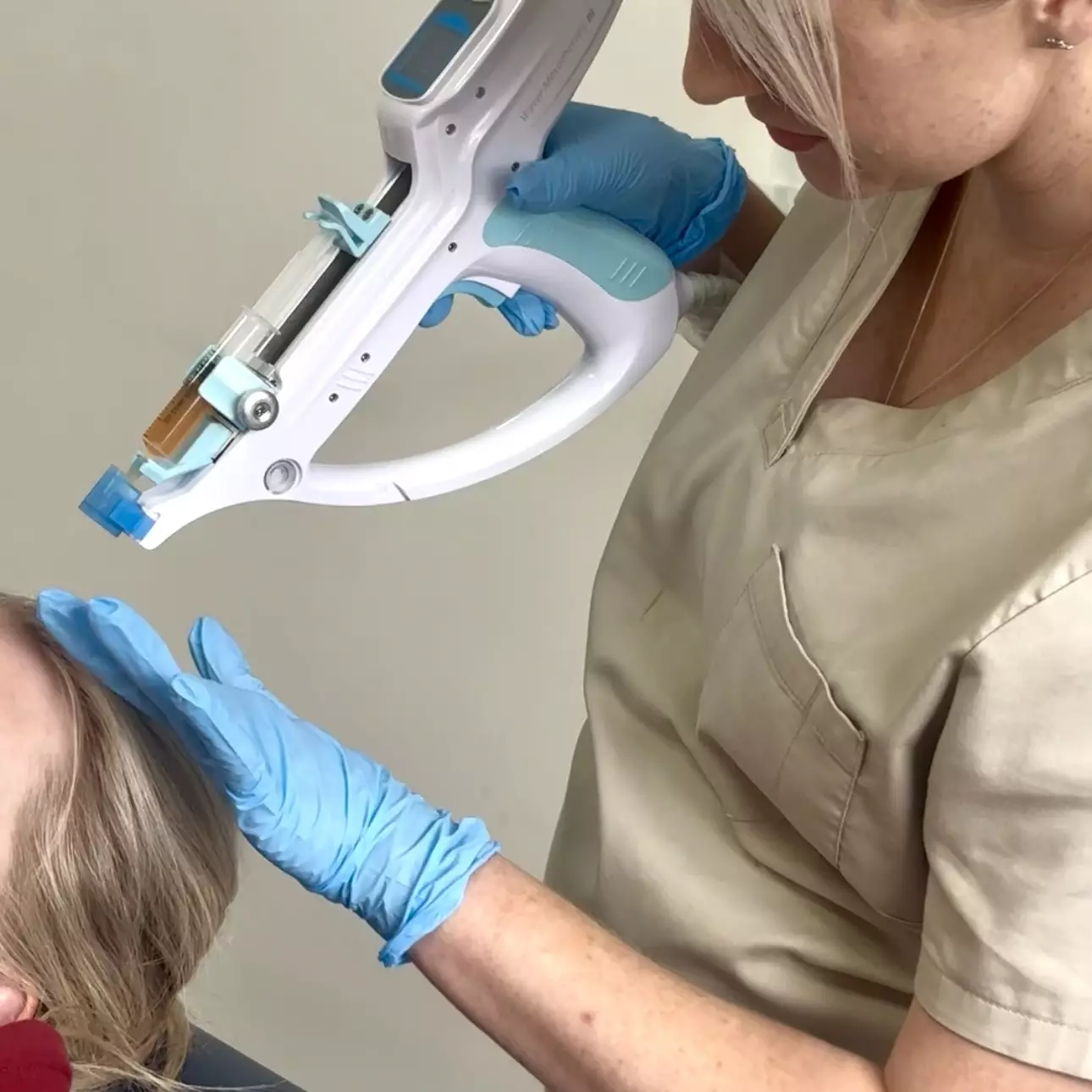 You may of heard of PRP (Platelet-Rich Plasma) hair treatments which use a sample of your blood, spun in a machine to separate the plasma, to inject into your scalp to boost hair growth. PRF (Platelet-Rich Fibrin) is a newer version of this, spun slower and without extra chemicals, so it keeps more of the natural healing cells like platelets, white blood cells, and stem cells.